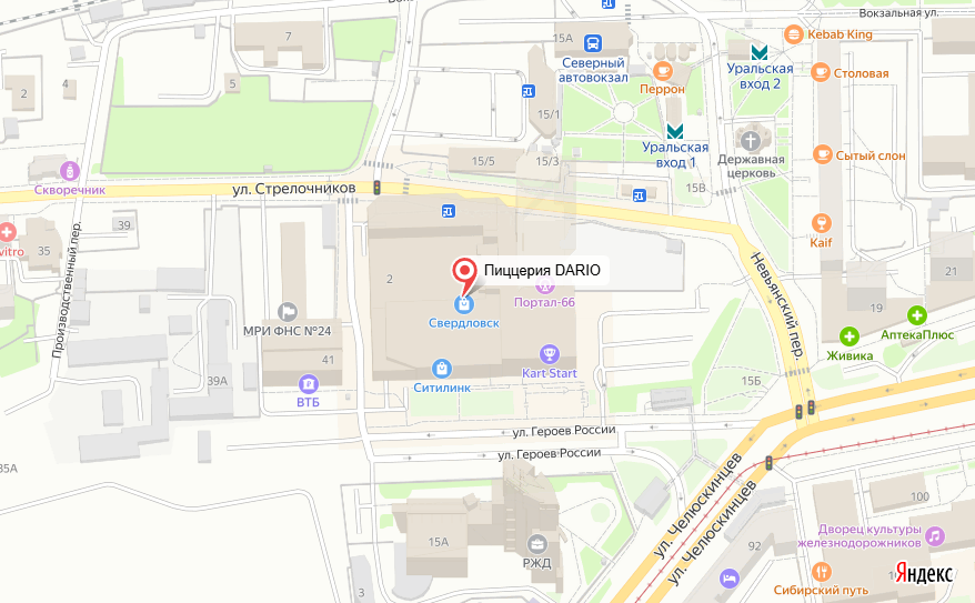 Мы находимся в оживлённой и доступной локации, поэтому нас легко найти. Пиццерия расположена прямо в ТДЦ «Свердловск» — отличном месте для семейного отдыха.