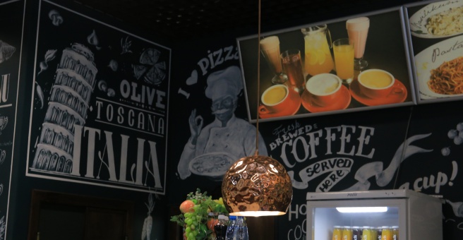 Зал пиццерии уютный, светлый, с мягкими диванами и тёплой подсветкой. Пространство продумано так, чтобы здесь было комфортно всем — от семей с детьми до тех, кто пришёл на быстрый обед. Открытая кухня позволяет видеть, как рождаются любимые блюда, а простая и понятная подача делает посещение максимально лёгким и приятным. Это не формальное заведение и не суетное кафе, а место для отдыха, вкусной еды и ощущения уюта.